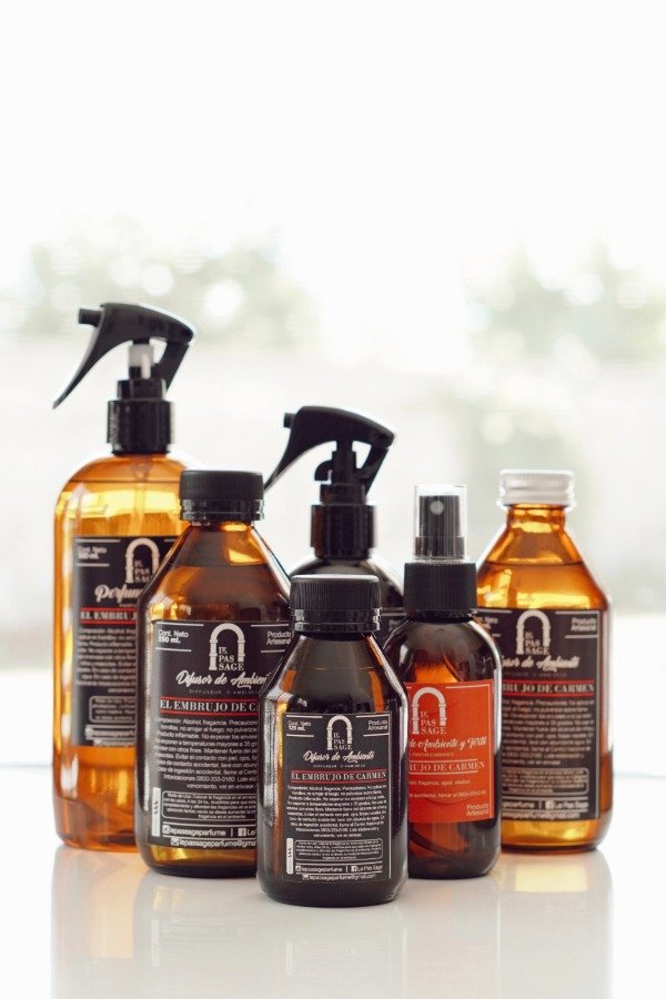 - El embrujo de Carmen: Familia floral amaderada, con notas de salida de flor de naranjo, limón, eucalipto y menta, en un cuerpo de rosa, jazmín y vainilla sobre un fondo de cedro, palo santo, vetiver y almizcle.